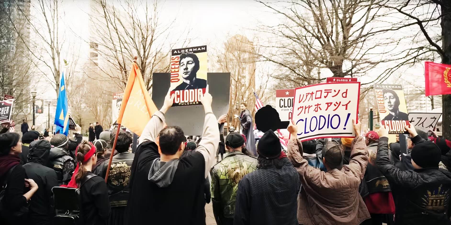 One of the central conflicts of the last third of the film is Clodio Pulcher (Shia Lebouf) running for city council on an authoritarian populist platform (a reference to a certain president elect), whose far-right ties are so obvious his stump speech takes place on a carved-out swastika and his chief assistant (Jason Schwartzman) bears a Sonnenrad tattoo.